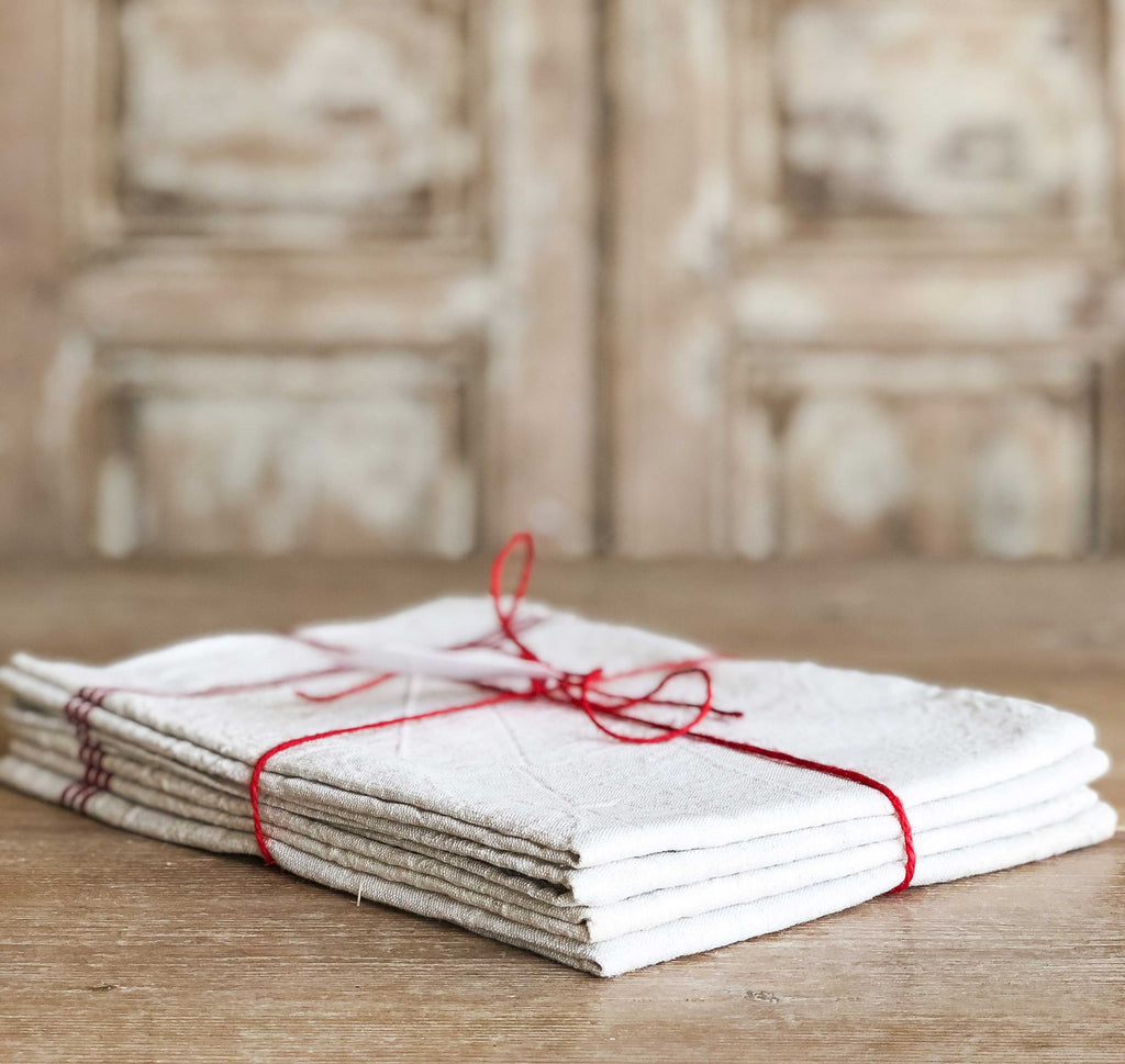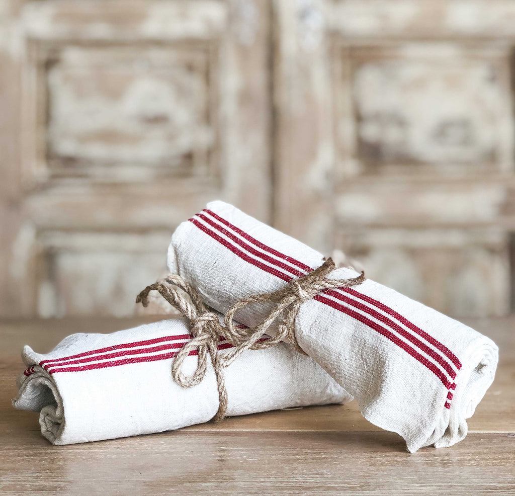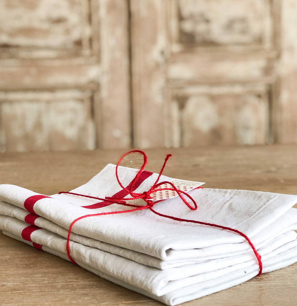 Paño de lino Rayas rojas 4 uds