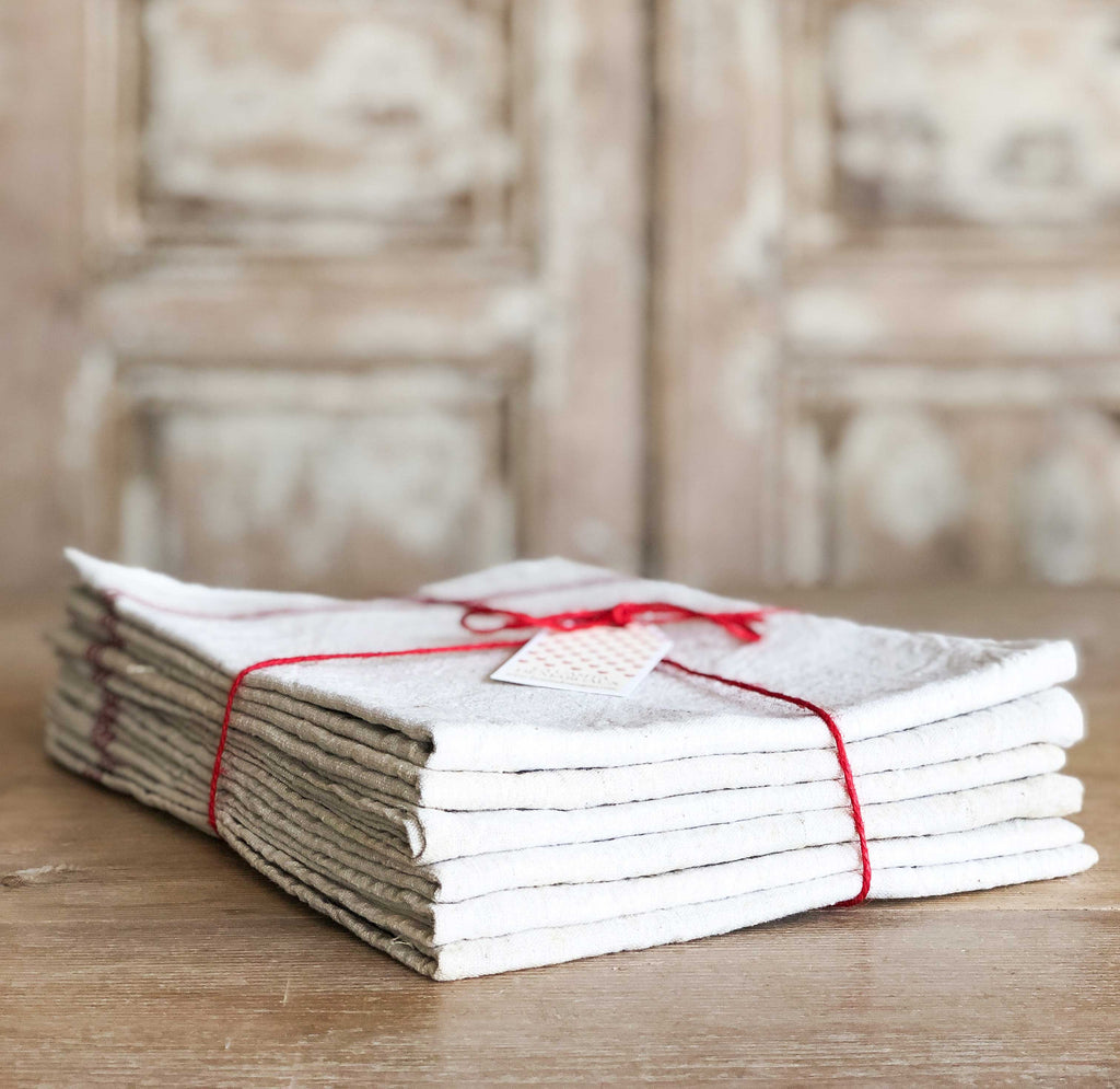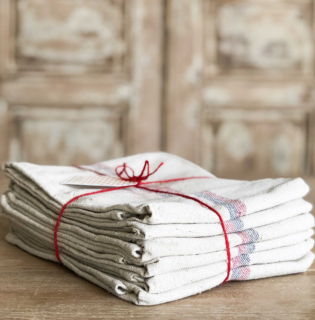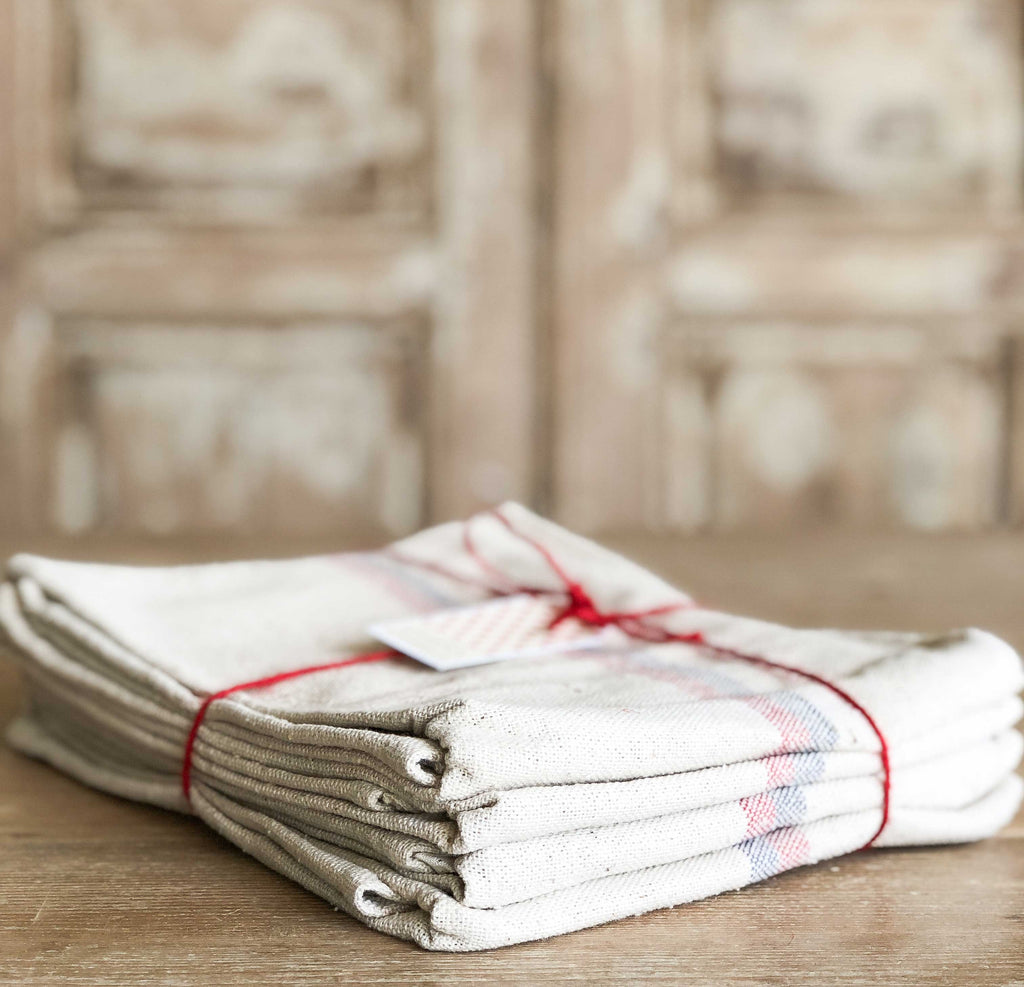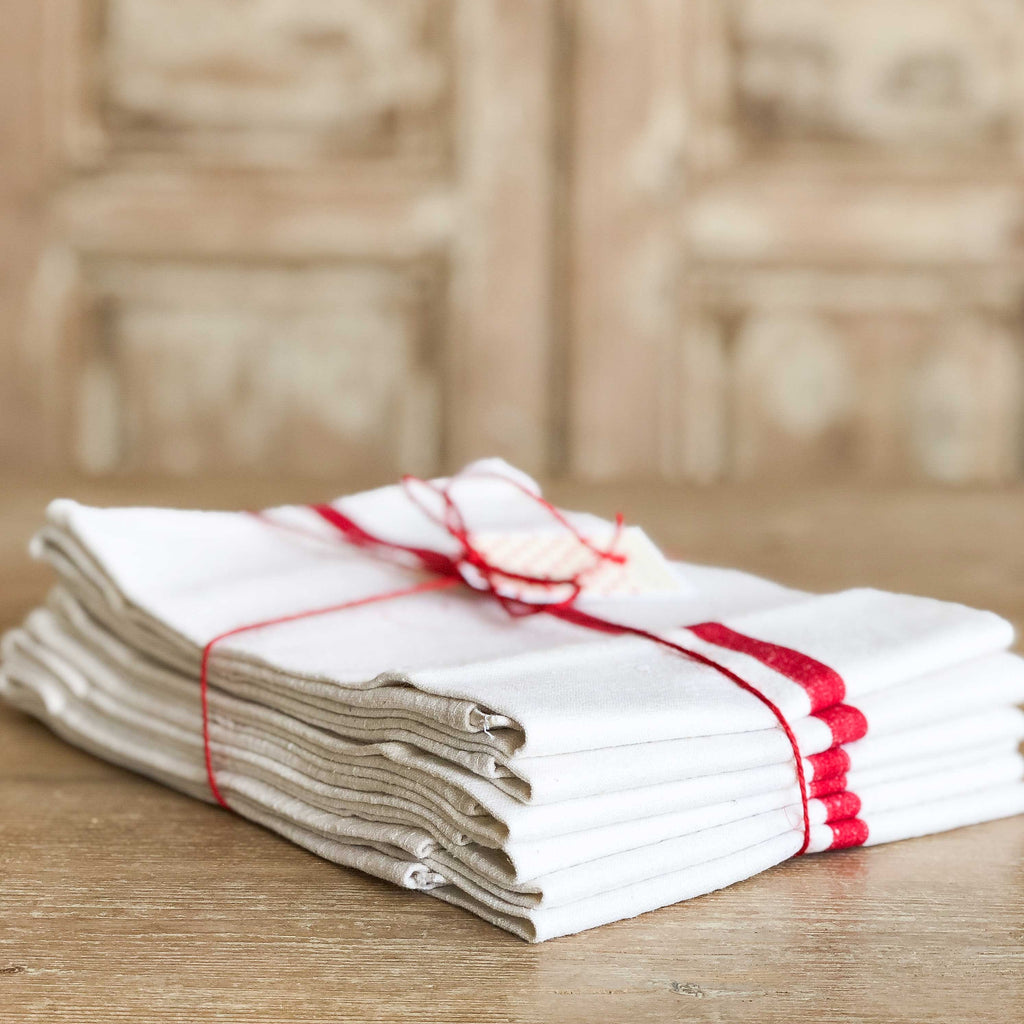 Paño de lino Rayas rojas 6 uds